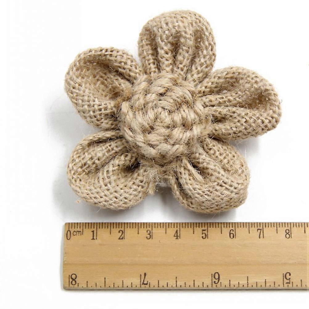 Vintage Hessian Flowers Burlap Lace Flowers Rustic Wedding Decor DIY Craft Decorations Khaki 10pcs