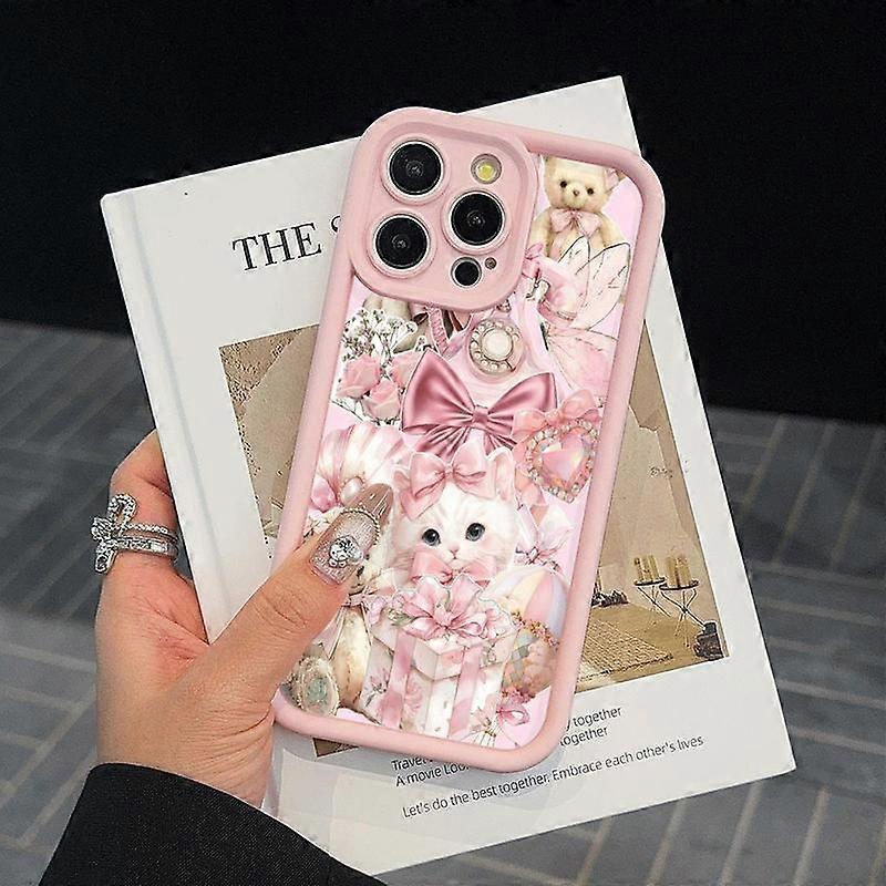 Cute Bowknot Cat & Bear Pattern Phone Case, Anti-drop & Shockproof Phone Protective Cover, Phone Accessories Compatible with iPhone Series,