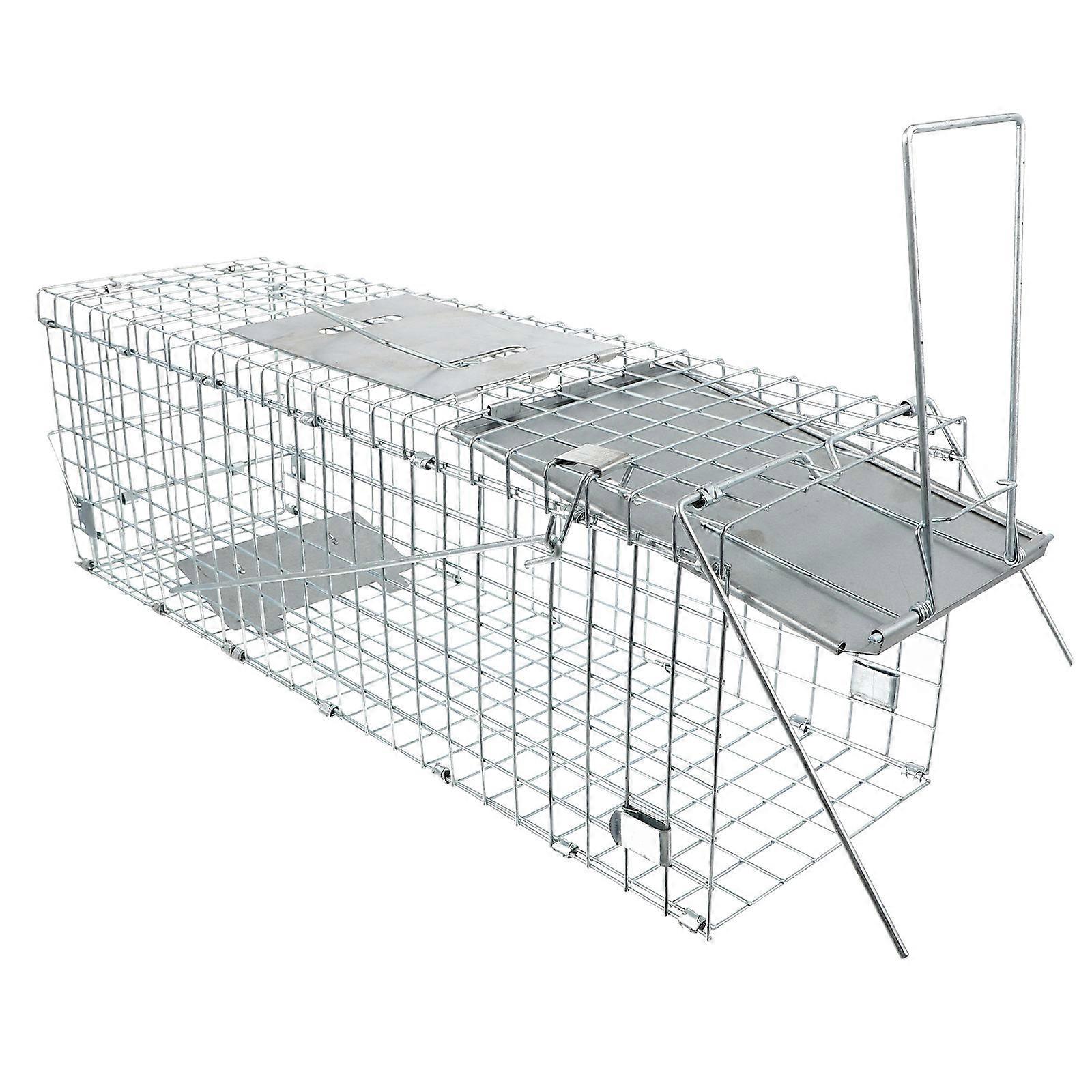 If you like hunting, then you miss our cage. It is specially designed to catch live so that it will not harm them and is very humane. Very suitable for outdoor hunting or those or dogs. Features - Color: Silver. - Material: Stainless steel. - Size: Approx. 60.00X18.00X21.00cm/23.58X7.07X8.25in. - Using galvanized stainless steel material for maximum resistance to rust. - design, easy to fold flat and convenient for storage. - trigger ensures the single door to in micro-seconds eliminating the chance of a quick escape. - Smooth surface and edges injuries to and to you. - Double-door design makes release more convenient. Package list: 1