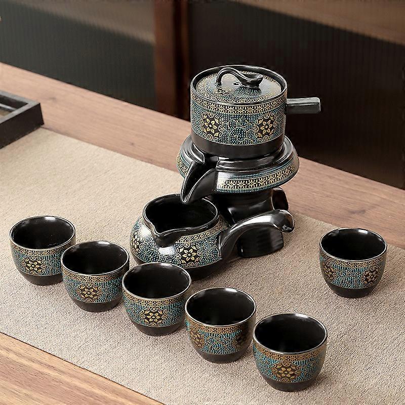 Household Tea Set Creative Living Room Semi-automatic Rotating Kungfu Tea Set Water for Tea Making Ceramic Teacup Business Gifts