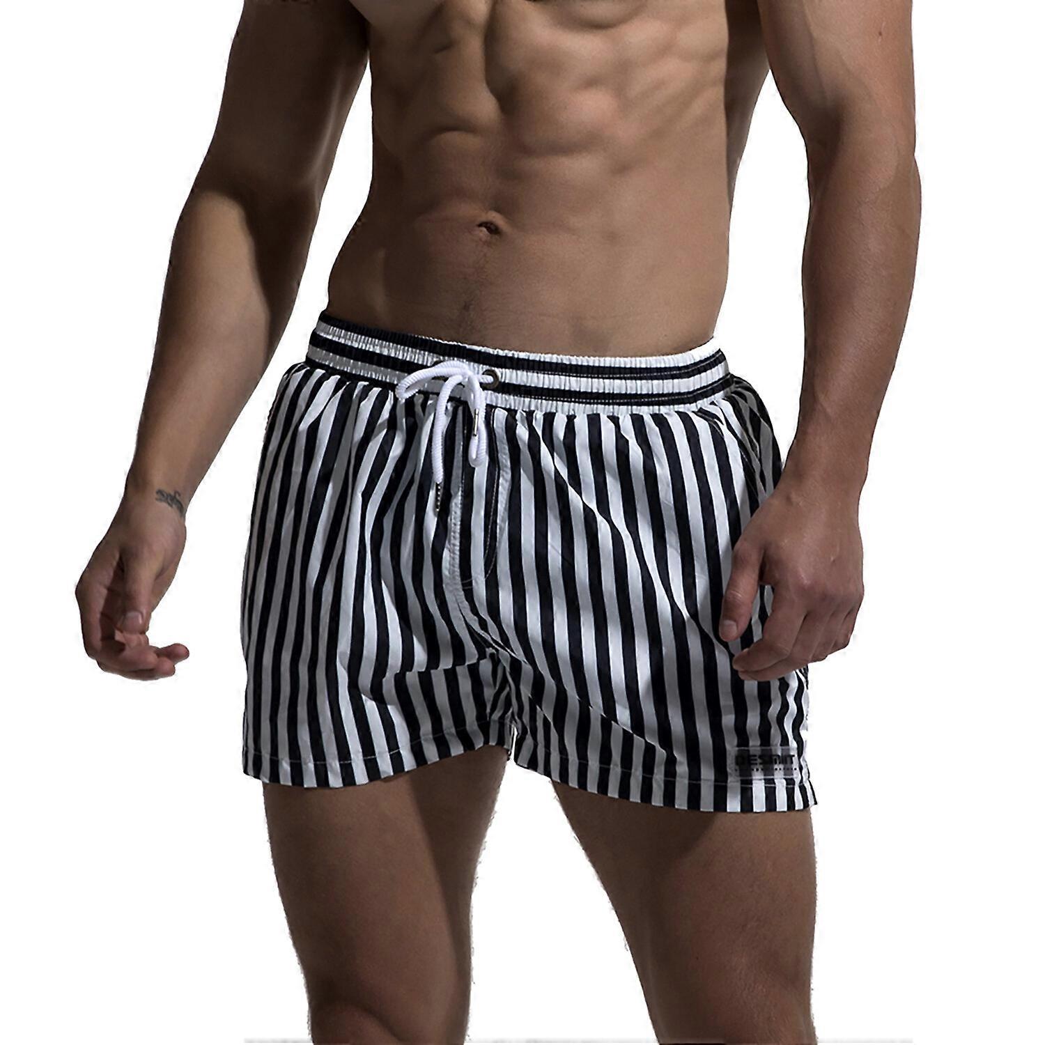 DESMIIT Men's Striped Navy Board shorts Lining Surf Swimwear Work out Fitness