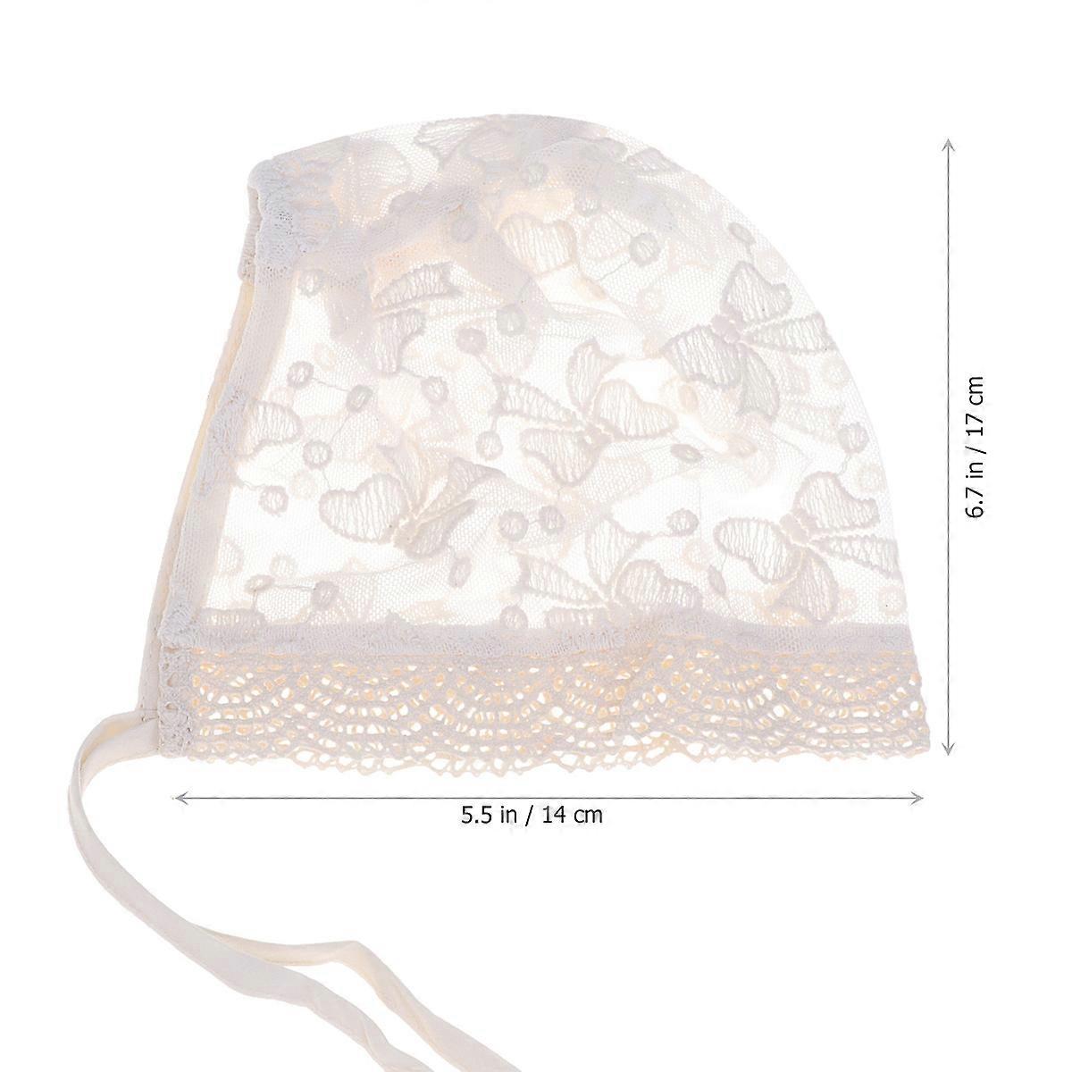 White Baby Lace Hat with Ribbon Design for Kid Made of Lace and Cotton Breathable Material Size