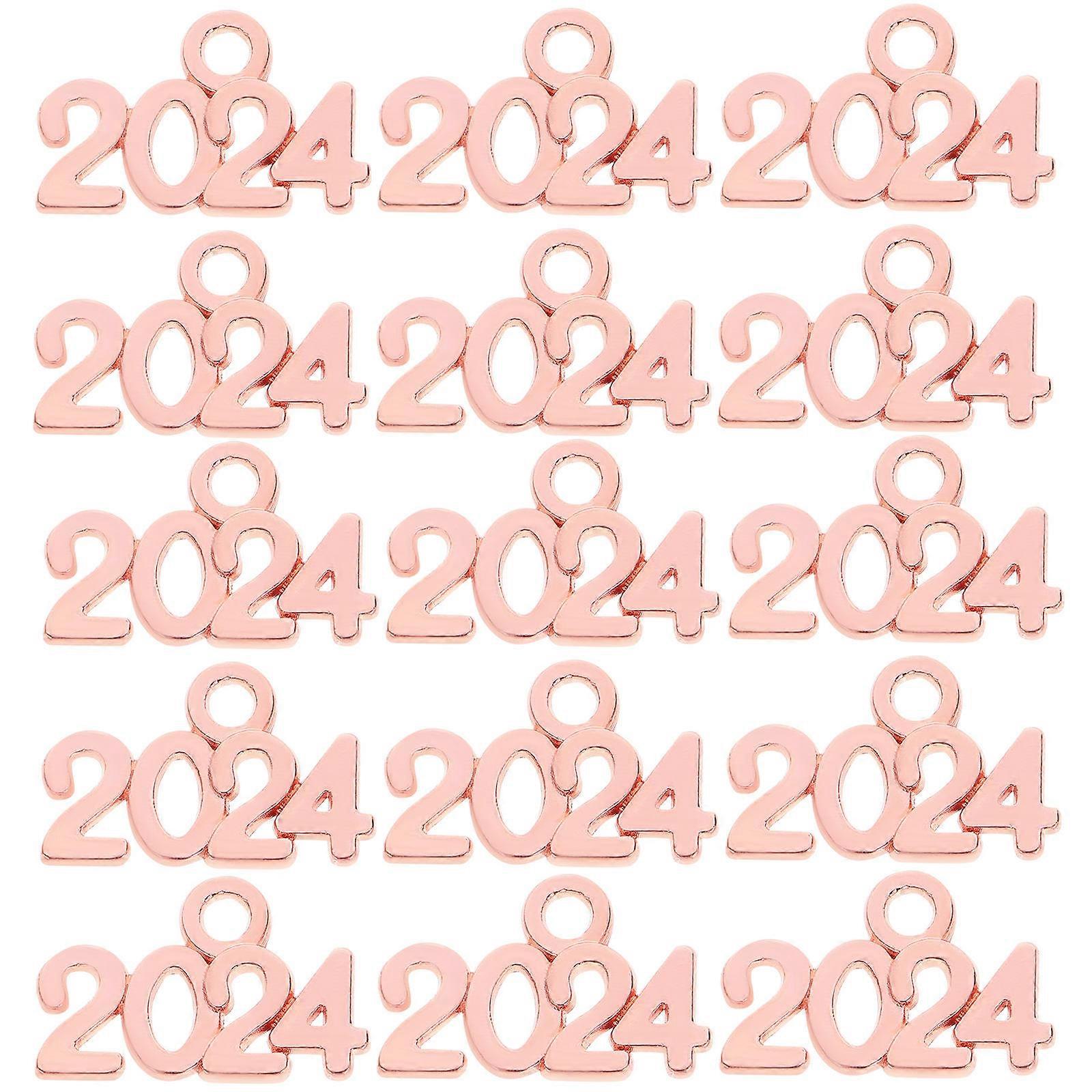 Rose Gold 2024 Number Charms for Crafting Jewelry Making Gifts Decorative Zinc Alloy Pendants 100