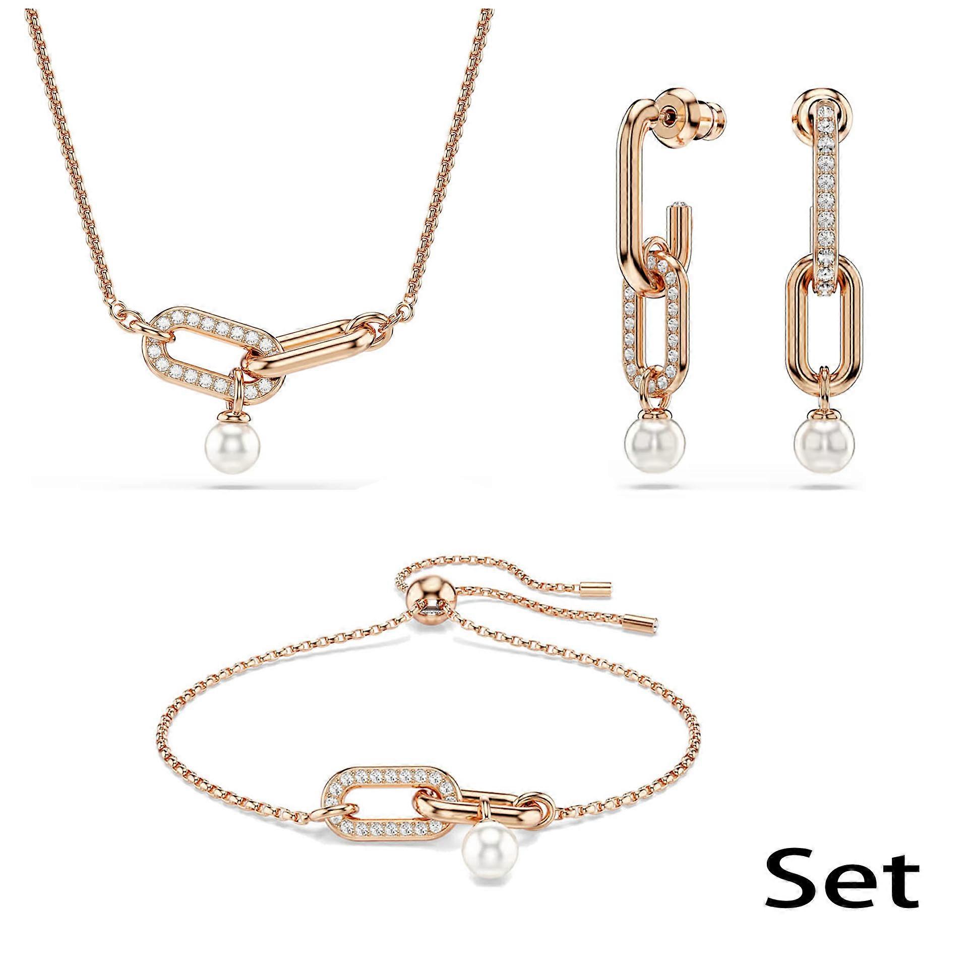 New Fashion Chain Dazzling Pearl Necklace 2025 Fine Jewelry Set for Women Long Earrings Double Layer Stacking Bracelet Ring