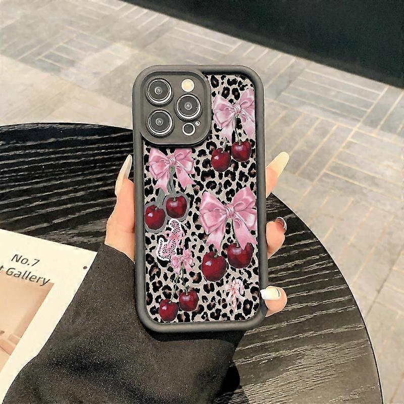 Cherry & Bow Pattern Phone Case, Decorative Phone Protector Cover, Phone Accessories Compatible with iPhone 15 14 13 12 11 Pro Max XS XR, Ca