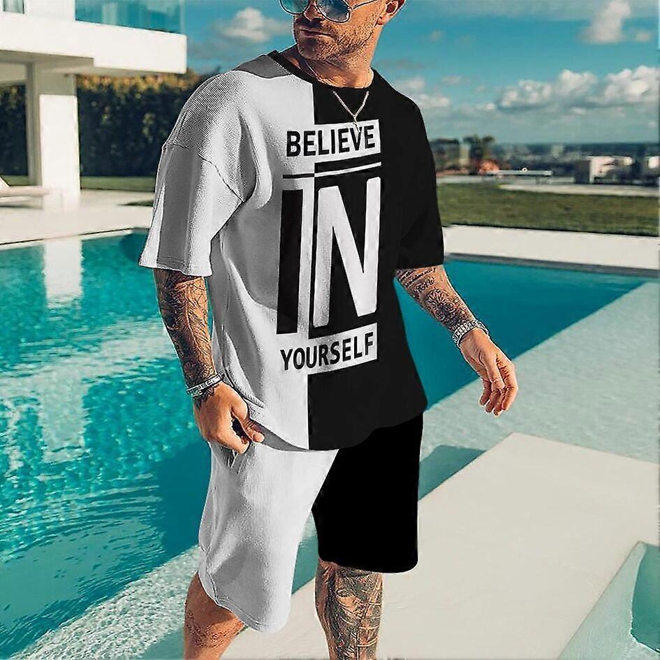 Summer Men Set Shorts Outfits Street T Shirt Two Piece 3D Print Casual Tracksuit