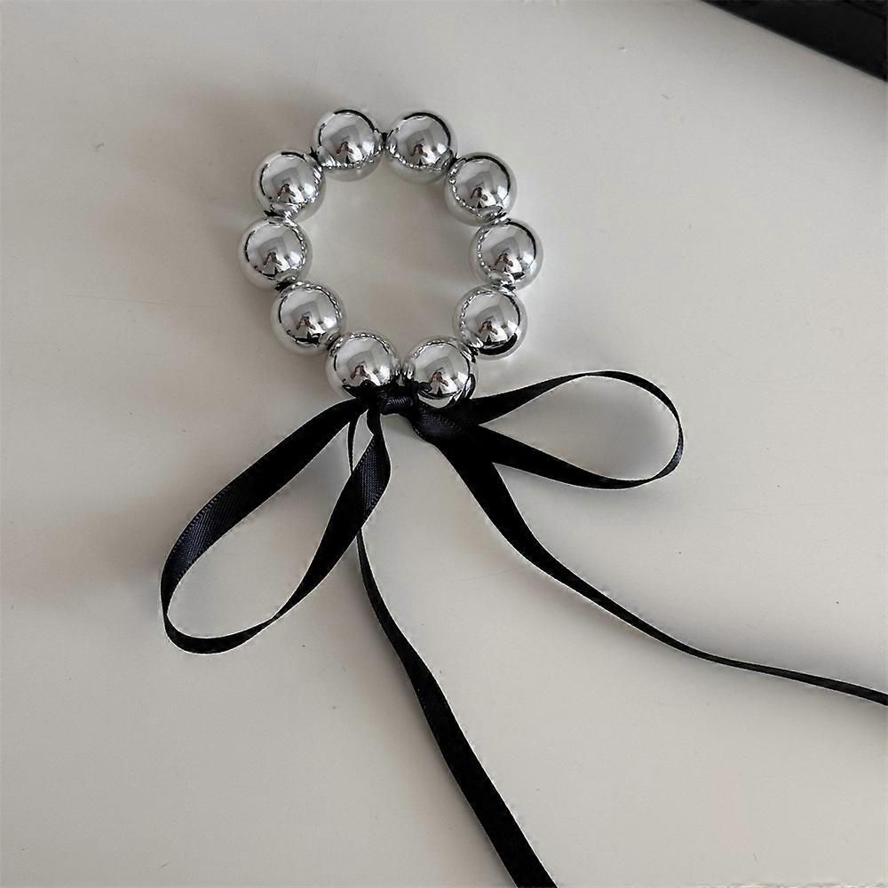 Woman Senior Silver Pearl Hair Ties Girls Hair Accessories Black Bowknot Elastic Hairband Scrunchies Hair Ring Bracelet Headwear