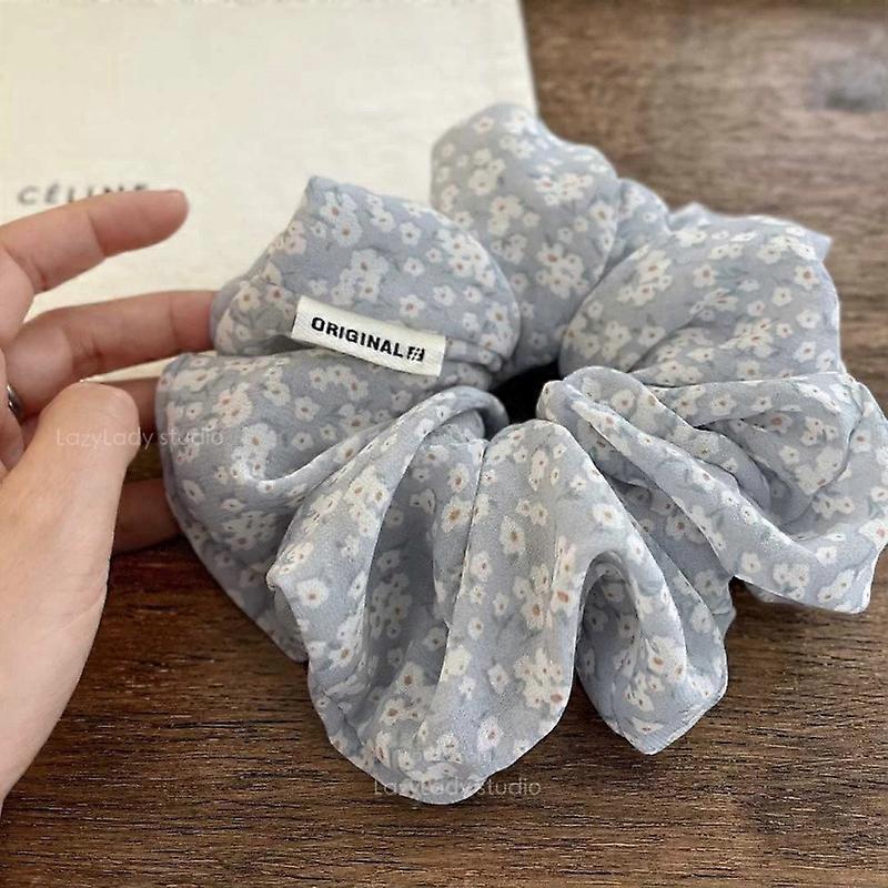 Korea Elegant Flowers Hair Scrunchie For Women Big Hair Tie Girls Elastic Hair Rubber Bands Blue Scrunchy Accessoires