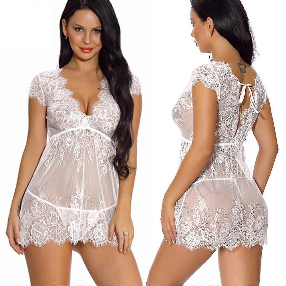White Babydoll Lingerie for Women Sexy Nightgowns for Bride Lace Chemise Nighty