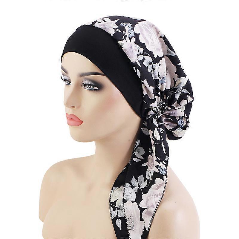 Nouveau Bonnet ��lastique imprim�� Paisley, Turban, foulard d��contract��, Bonnet ��lastique pr��-attach�� pour cheveux, chapeau de chimio �� lacets