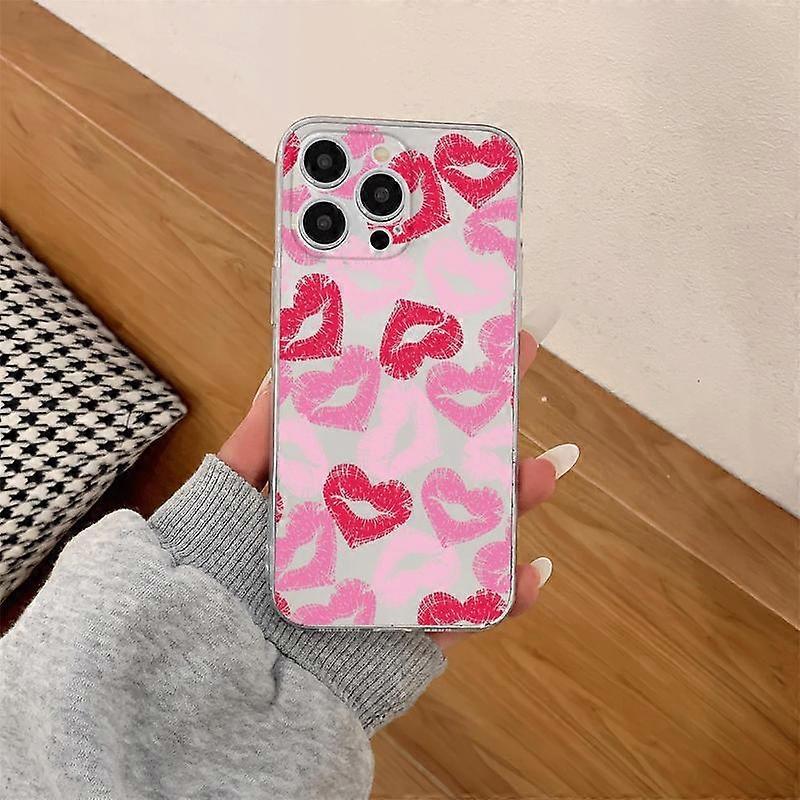 Heart Lip Print Pattern Phone Case, Decorative Phone Protector Cover, Phone Accessories Compatible with iPhone 16 Pro Max 15 14 13 12 11 Pro Max Plus X XR XS Max, Casing