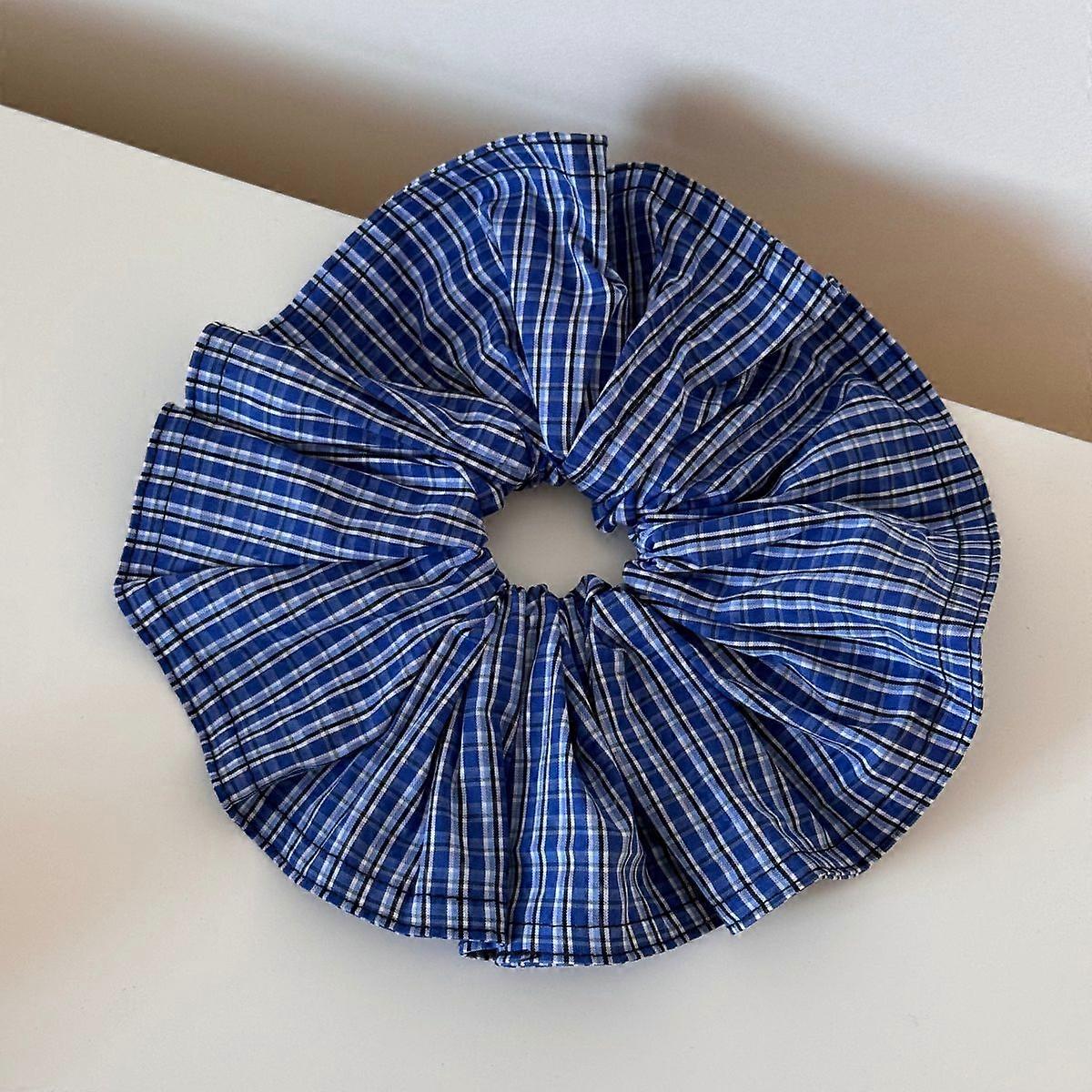 Korean Plaid Stripe Navy Blue Hair Scrunchie for Women Girl Elastic Hair Tie Rope Rubber Bands Hair Accessories