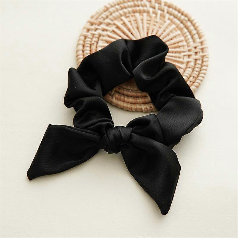 Korean Woman Elegant Brief Solid Color Bow Elastics Hair Band Girls Scrunchies Hair Ties Ladies Ponytail Hold Hair Accessories