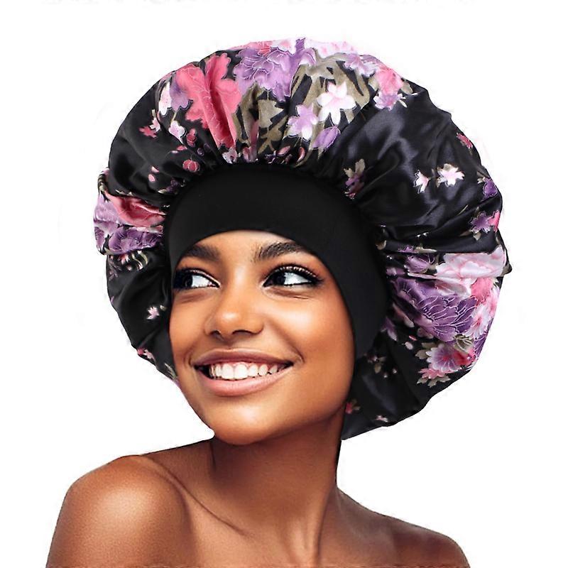 Chapeau de nuit en Satin de grande taille, Bonnet imprim�� floral, ��lastique, large bande, Bonnet de couchage pour femmes, soins capillaires,
