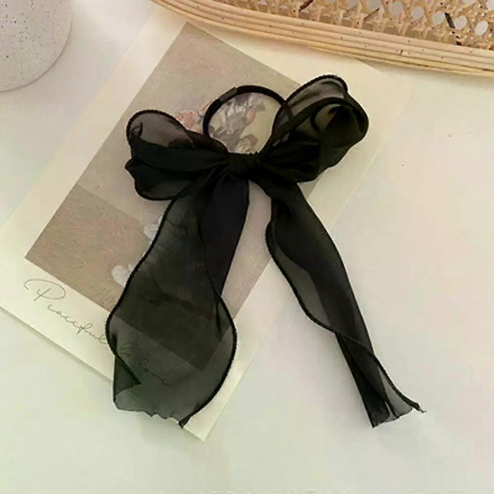 Summer Solid Color Lace Yarn Ribbon Hair Scrunchies Women Bow Elastic Hair Rope Ponytail Holder Girls Hair Ties Accessories