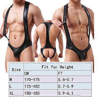 Men Wetlook Leather Leotard Bodysuit Jumpsuit Catsuit Lingerie Tank Clubwear PU