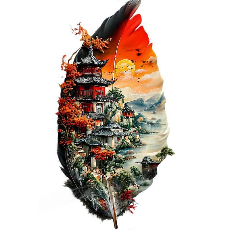 A104 Healing Blue Leaf Landscape Decorative Stickers Waterproof