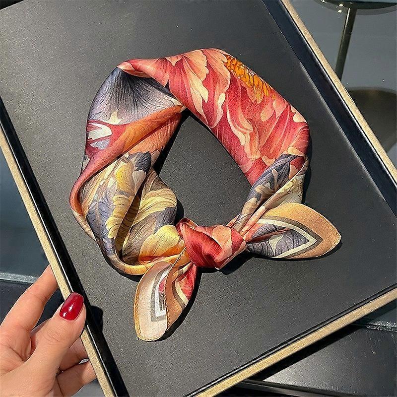 100% Silk 21" Square Scarf Women Neckerchief Wrap Kerchief Bandana Red Flowers