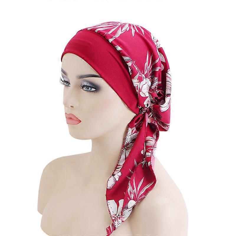 Casquette Turban pr��-nou��e pour femmes, Hijab musulman, chimio contre le Cancer, imprim�� floral, couverture de chapeau, perte de cheveux, fo