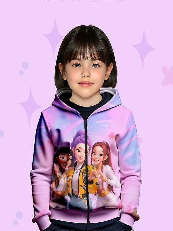 Girls Lightweight Hooded Zipper Sweatshirt, Graphic Casual Hoodie, Casual Daily Wear, Fall & Winter Fashion, Trendy Street Style, Fitted Des