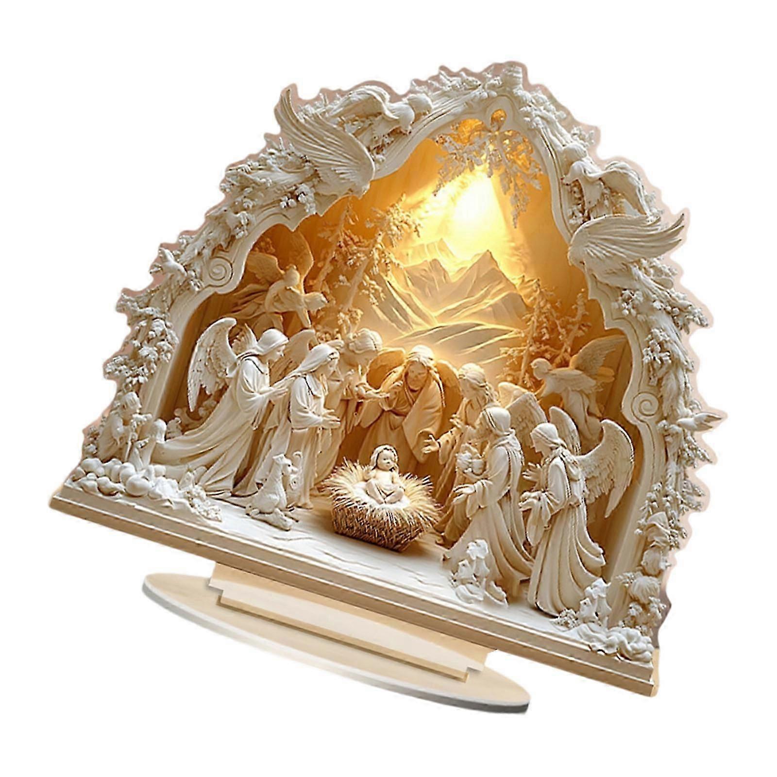 White Religious Nativity Scene 2D Acrylic Desktop Decoration Ornament For Home Office Sacred Christian Display Art