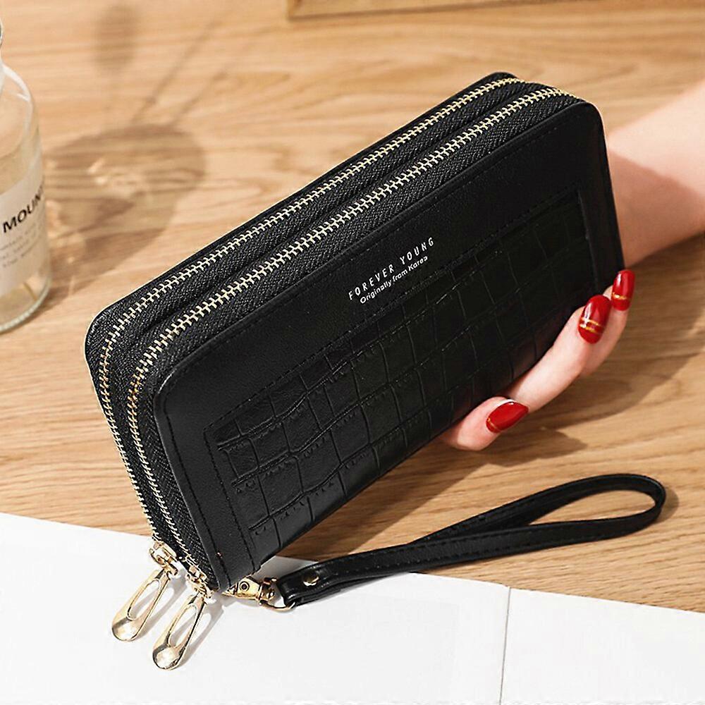 Double Zipper Wristlet Wallet for Women Large Handbag Multi Pockets Clutch Purse