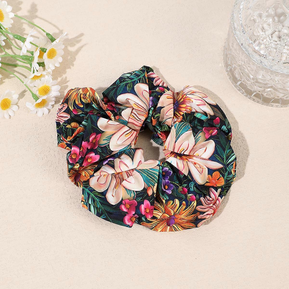 AWAYTR Baroque Floral Print Satin Rope Hairbands Hair Accessories For Woman Ponytail Holder Elastic Scrunchies Rubber Bands