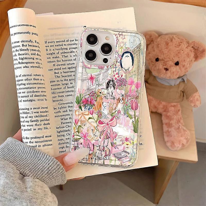 Cartoon Dog & Cat Pattern Phone Case, Decorative Phone Protector Cover, Phone Accessories Compatible with iPhone 16 15 14 13 12 11 Pro Max,