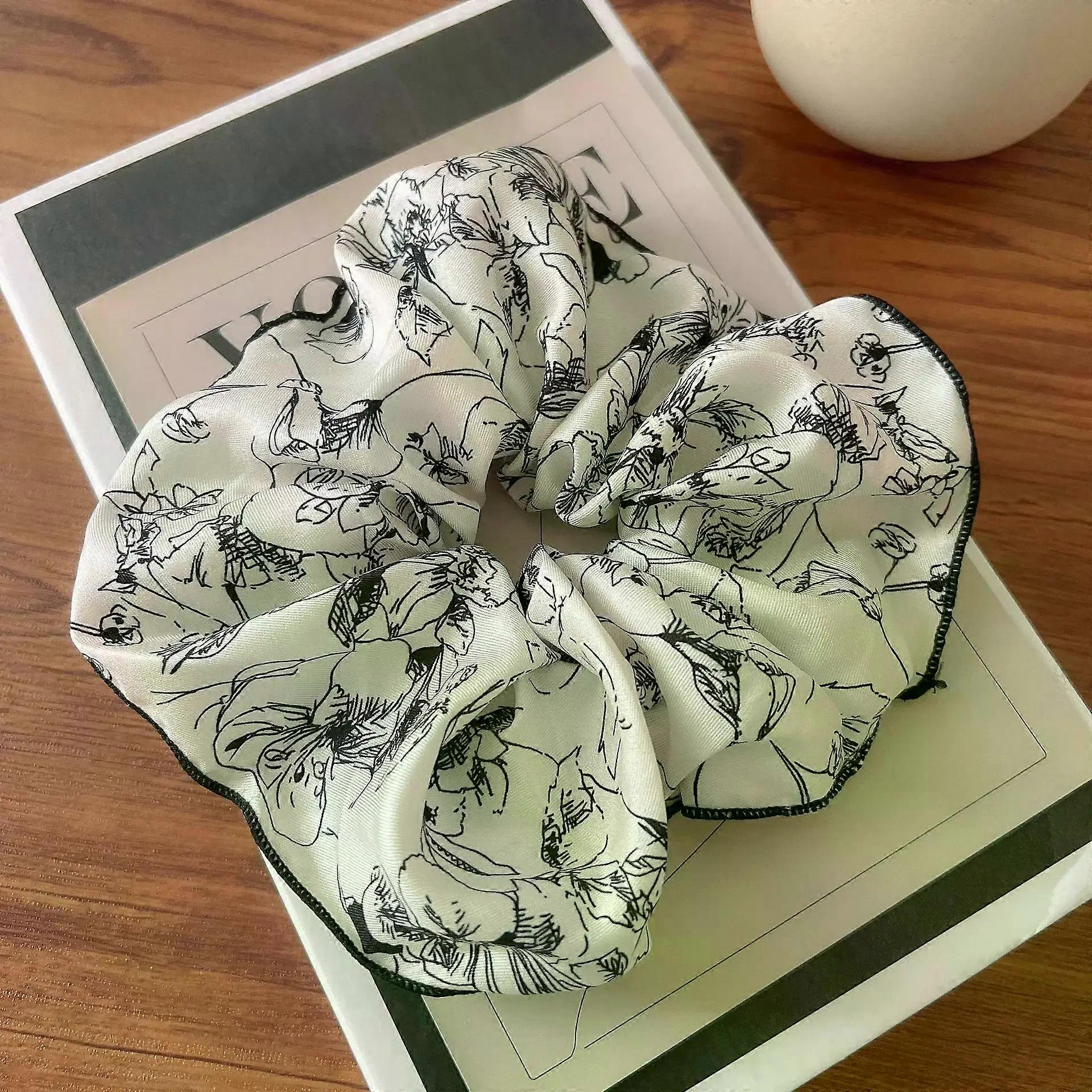 Vintage Black White Printed Hair Scrunchies for Women Girls Hair Ties Ladies Ponytail Holder Hair Accessories