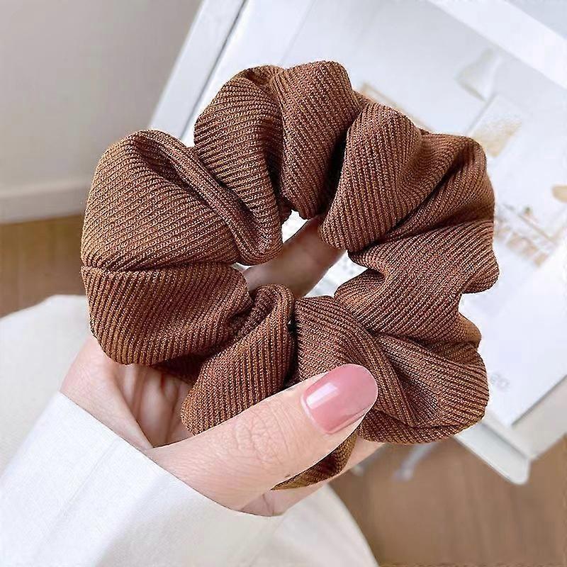 Korean Brown Color Scrunchies Lazy Style Houndstooth Simple Casual Large Hair Tie Rope Student Girls Solid Elastic Hair Bands