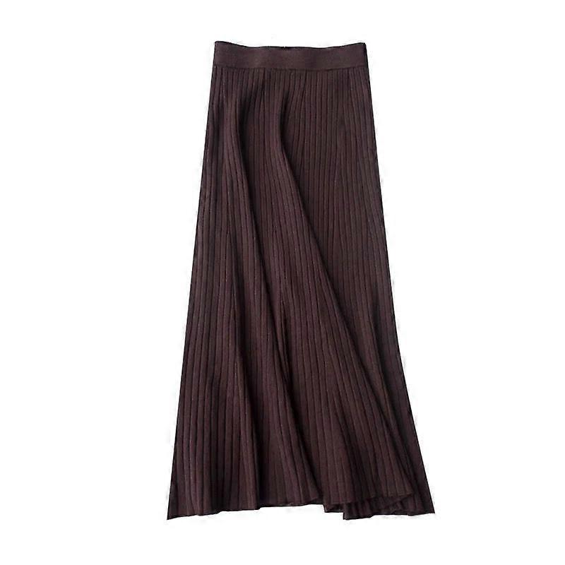Lady Knit Maxi Skirt Cotton Pleated Flared High Waist A Line Midi Long Black New