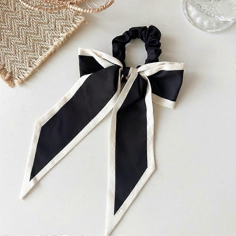 Fashion Black White Contrast Color Bowknot Ribbon Tassel Scrunchies Elastic Hair Bands For Women Hair Tie Party Girls Headwear