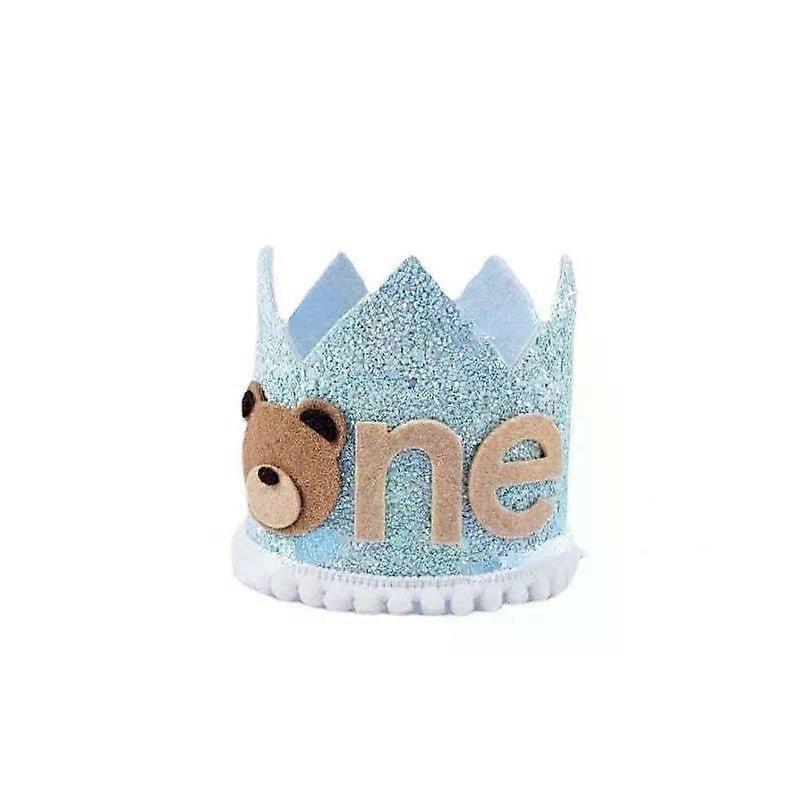 Blue Teddy Bear One Year Felt Crown Birthday Party Hats Cartoon Animal Little Bear Hat Kids Boys Happy 1st Birthday Party Decors