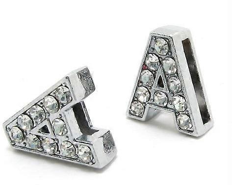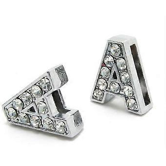 Hole 8MM 10PC/lot Full Rhinestones Silver Color Slide Letter A - Z DIY English Alphabet Fit For Pet Collar Keychains Bracelet