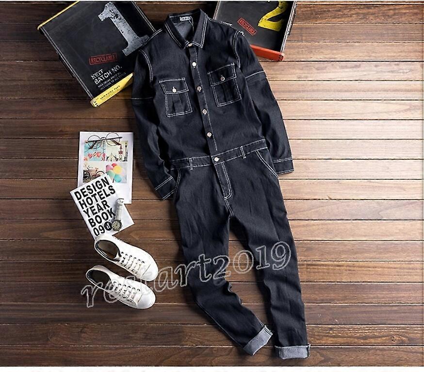 Mens Denim Jumpsuit Rompers Long Sleeve Jeans Coverall Overalls Pant Trousers