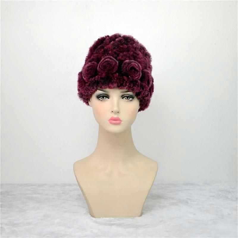 Winter Women Real Rabbit Fur Hats Beanies Knitted Fur Caps Floral Striped Design