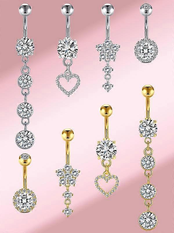 Rhinestone Decorated Belly Ring, Heart Shaped Flower Pendant Navel Ring for Women & Girls, Fashion Jewelry for Party, Daily Decor, Trendy Al