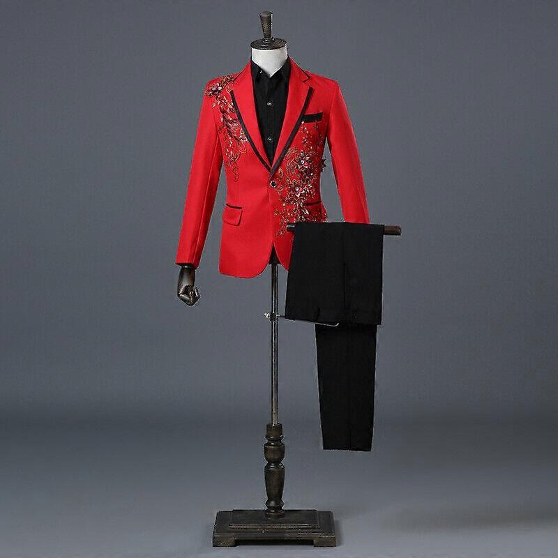 Men Wedding Sequin Embroidered Appliqué Suit Jacket Pants Dinner Prom Suit Dress