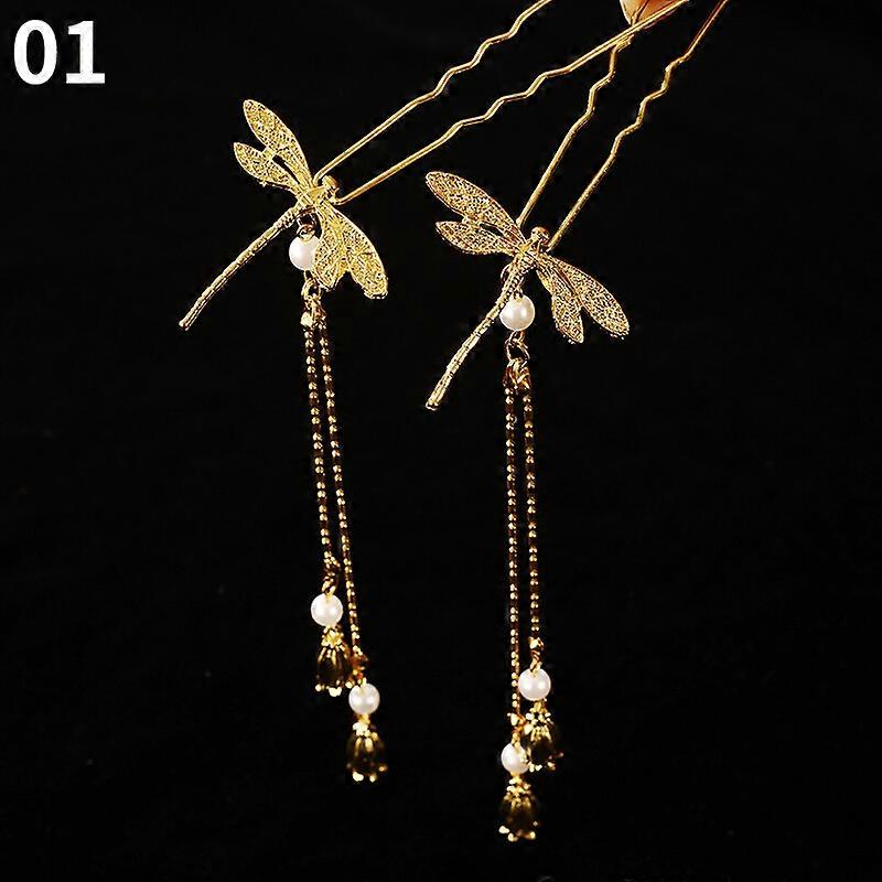 1Pair Hairpin Dragonfly Fringe Kanzashi Flower Step Shake U-shaped Hair Clip