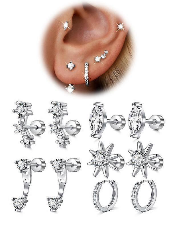 Women's Zircon Earrings Set, Stainless Steel & Metal Coated Hypoallergenic Jewelry, Elegant Party & Daily Wear Accessories, No Choking Risk