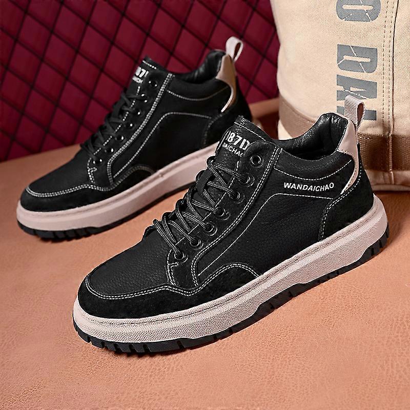 Men's breathable, non-slip casual leather shoes, black, trendy men's sports flat shoes