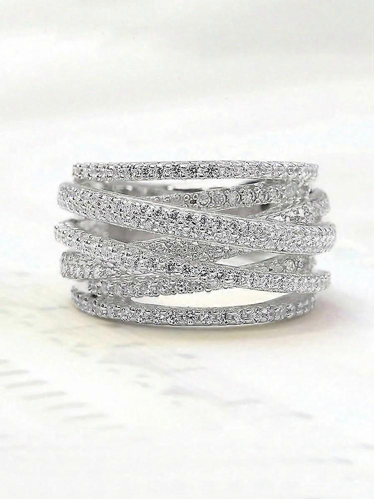 925 Sterling Silver Classic Vintage Line Wrap Zircon Ring For Women Daily Outfits Party Luxury Fashion High Quality Fine Jewelry