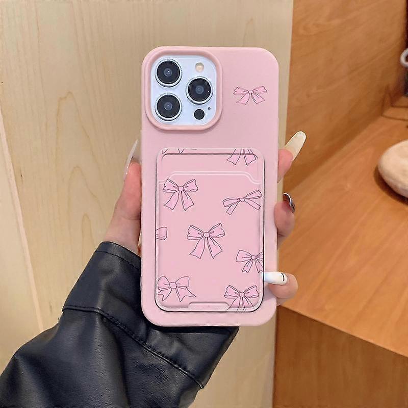 Bow Pattern Phone Case with Card Holder, Cute Phone Protective Cover, Phone Accessories Compatible with iPhone 16 15 14 13 12 11