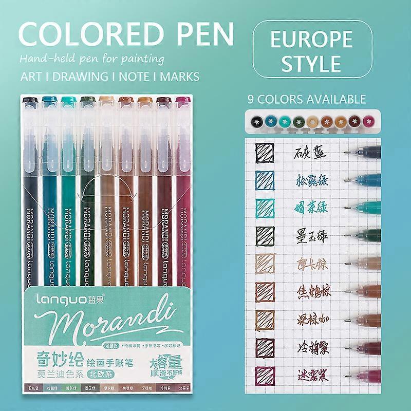 9 Pcs/Set Colored Painting Gel Pens Large Capacity Multi-Color Ink Art Marker Liner for Students Drawing Painting Handbook Pen