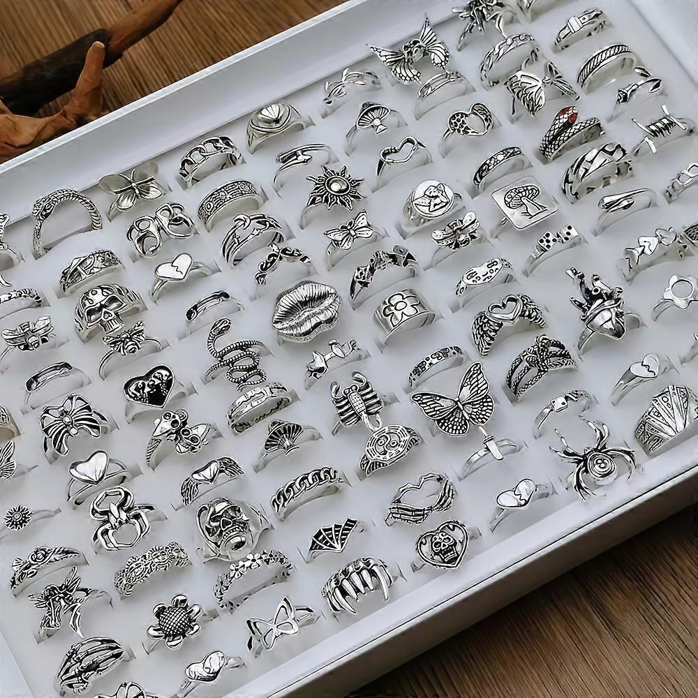 10/20/30pcs/Lot Fashion Classic Vintage Punk Cross Spider Skull Rings For Men Women Hop Hip Rock Jewelry Accessory Party Gifts