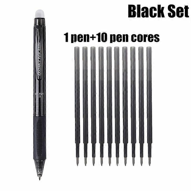 11 pieces/set 0.5mm professional erasable large capacity gel pen set Each pen has its own top rubber and 10 pen refills