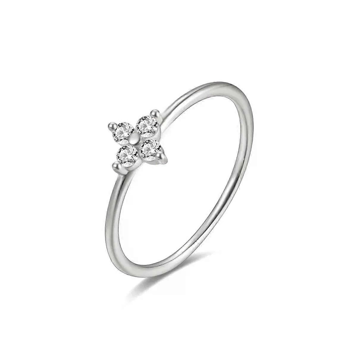 925 Thai Silver Inlaid Four Leaves Clover Zirconia Flower Ring for Women Simple Elegant Good Luck Anniversaries Jewelry Gift