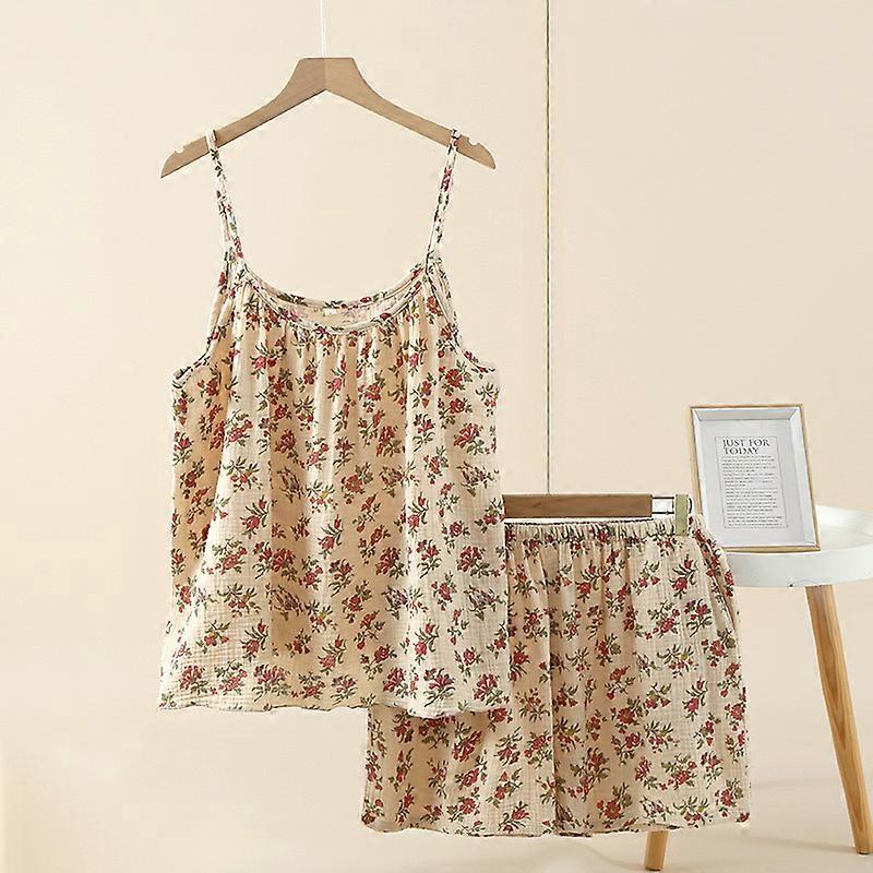 100% Cotton Women's pajama Set Woman 2 Pieces Spaghetti Strap Sleepwear Women Floral print Pajama Loungewea Spaghetti Strap