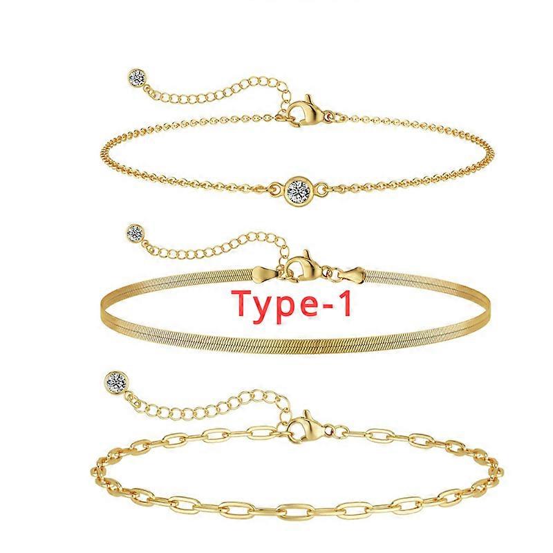 3pcs 14K Gold Plated STAINLESS Waterproof Bracelet Sets for Women Girls Snake Chain Cuban Link Cuff Bangle Stackable Bracelets