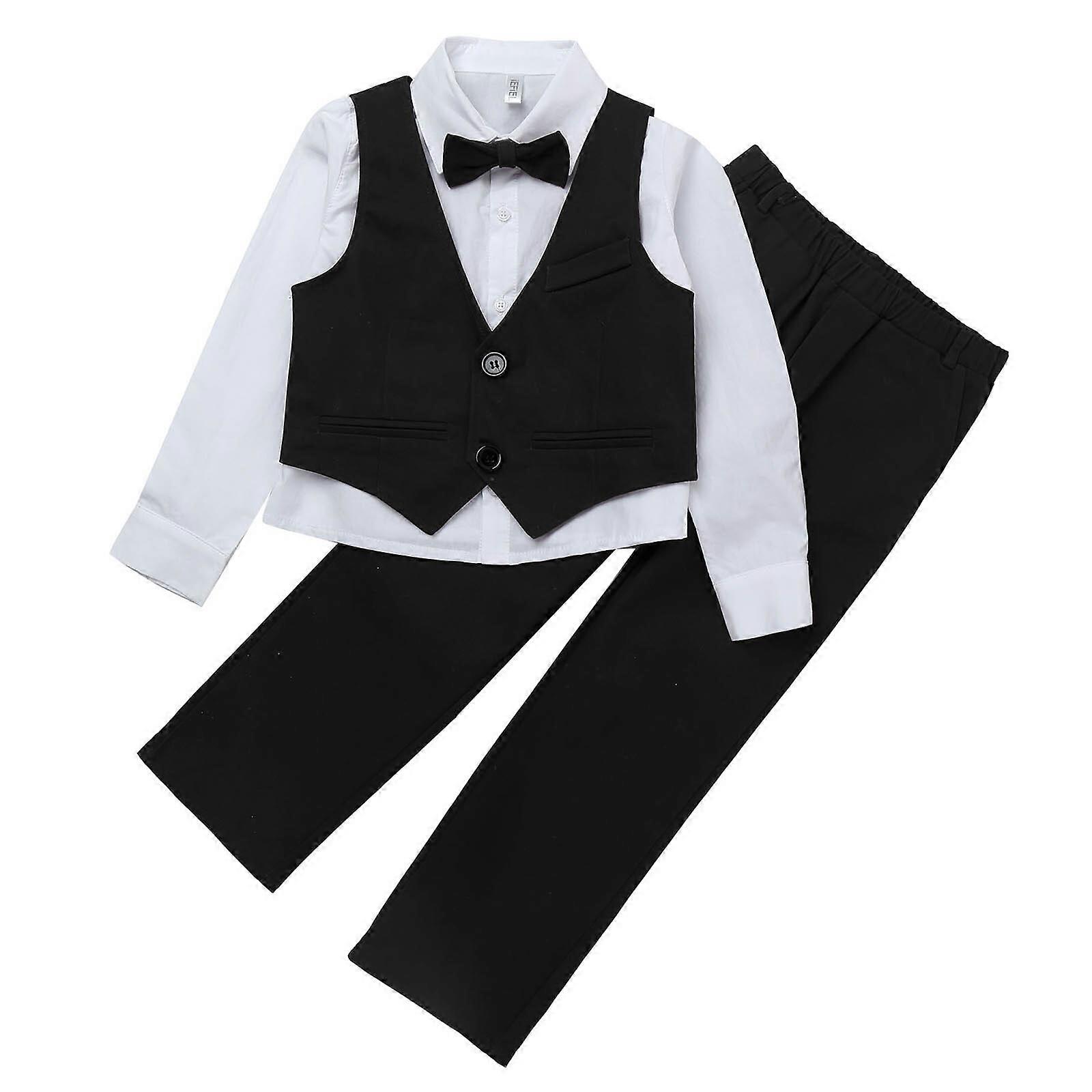 4Pcs Kids Boys Party Suits Long Sleeve Shirt Single-Breasted Vest Pants Tie Set